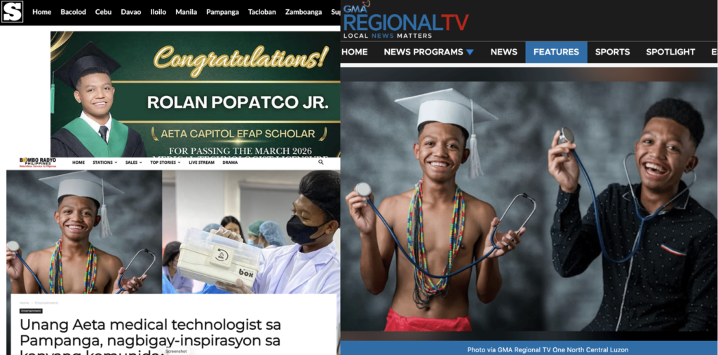 EARLIER this week, GMA Network’s 24 Oras Weekend broke the story of Rolan Popatco Jr., a 22-year-old from Barangay Camias in Porac, Pampanga, who passed the March 2026 medical technologist licensure examination — becoming the first licensed Aeta medical technologist in the province. He grew up in the mountains, came down to study in the lowlands, earned his degree from the College of Our Lady of Mount Carmel Pampanga through the provincial government’s Educational Financial Assistance Program, served as SK chairman while in school, and never stopped pushing — not for himself, but for his community.